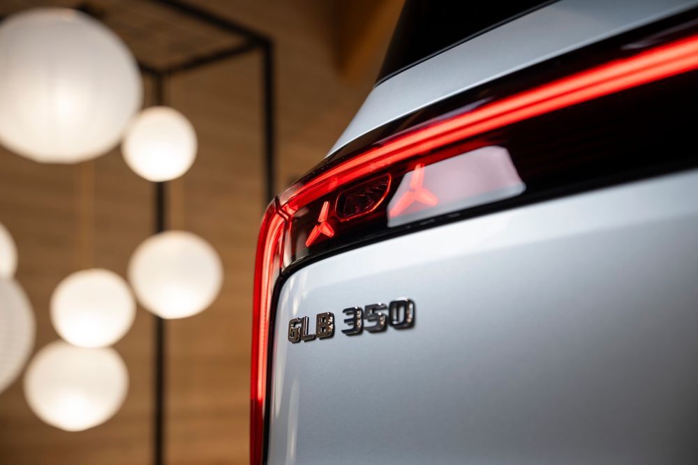 Výrazné proporce SUV se svislou přední částí a strmým čelním sklem jsou pro nový vůz charakteristické stejně jako krátké převisy patrné z bočního pohledu. Lemování kolem podběhů kol a vizuální ochrana proti poškození vpředu a vzadu zdůrazňují terénní charakter. Široký rozchod a zapuštěná kola spolu s mohutnými blatníky vozidla dodávají modelu GLB výrazný vzhled. Celkem 94 individuálně animovaných LED hvězd v chromovém provedení jsou vrcholem nezaměnitelné masky chladiče. V závislosti na právních předpisech konkrétní země je centrální hvězda také zcela nebo částečně osvětlena. Jedním z mála vizuálních rozlišovacích znaků hybridu GLB je klasická maska chladiče s chromovým vzorem Mercedes-Benz, obklopená standardním světelným páskem z LED diod.